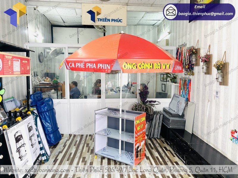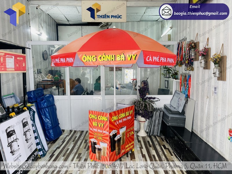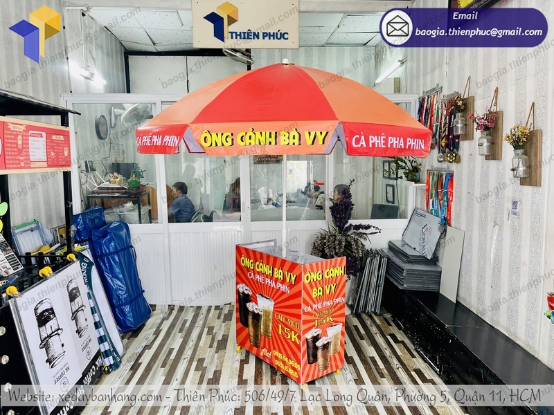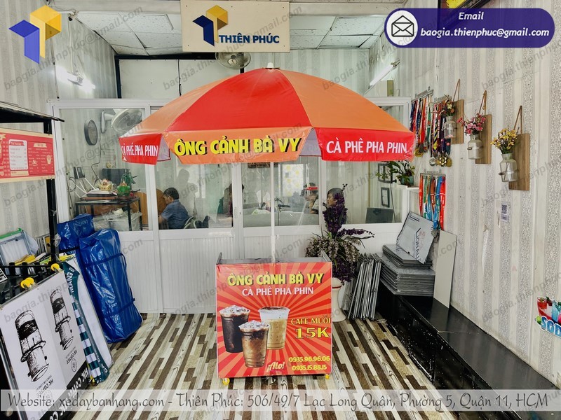 Để được sở hữu những xe cà phê gắn dù che nắng mưa chất lượng, giá rẻ, hãy liên hệ ngay với Công ty Thiên Phúc: