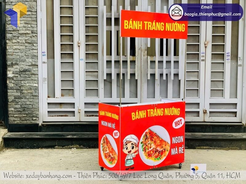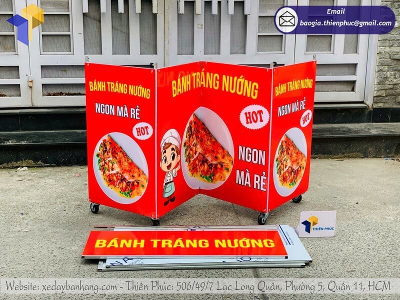 Tên sản phẩm: Thiết kế tủ bán bánh tráng dạo gấp gọn có bánh xe BÁNH TRÁNG NƯỚNG