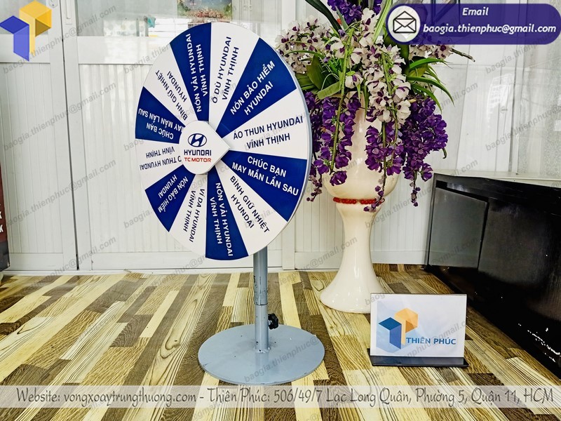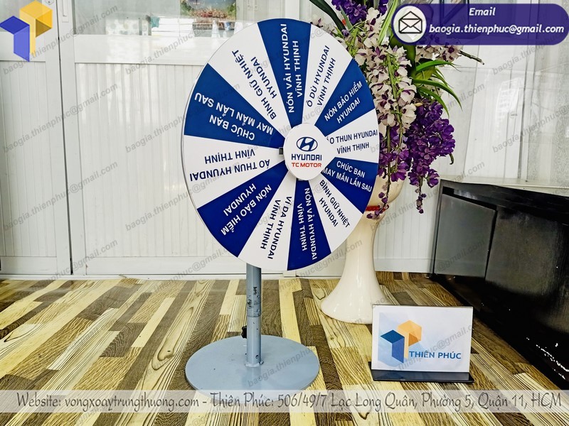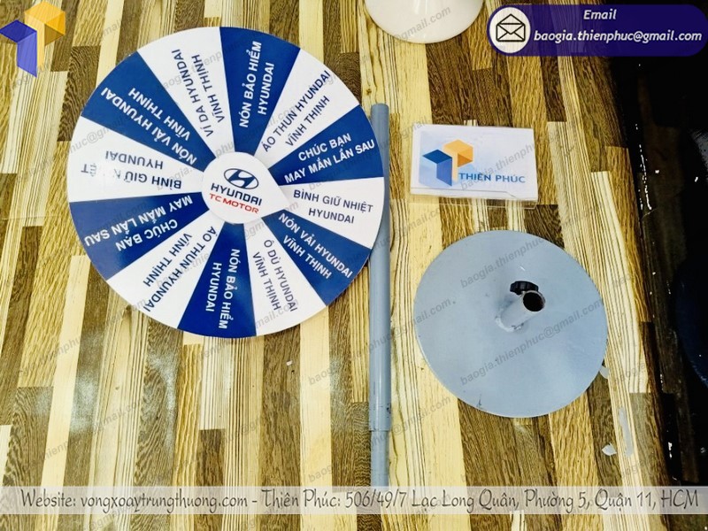 - Công ty Thiên Phúc là công ty chuyên in ấn và sản xuất quảng cáo, gia công chế tác các mẫu sản phẩm quảng cáo, vòng quay may mắn giá rẻ bền đẹp. Chúng tôi cung cấp số lượng lớn các sản phẩm vòng xoay trên thị trường toàn quốc, đặc biệt là ở TP. HCM. Thế mạnh của chúng tôi là các sản phẩm quảng cáo, xe đẩy bán hàng phục vụ khách hàng trên toàn quốc.