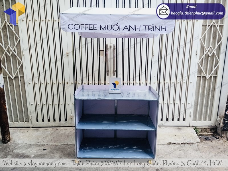 xe xếp gọn bán cà phê của Thiên Phúc được trang bị nhiều ưu điểm nổi trội với giá thành hợp lý, tuổi thọ sử dụng lâu dài. Kích thước 80cm rộng rãi, giúp người bán thoải mái chế biến trực tiếp và bán hàng ngay tại xe.