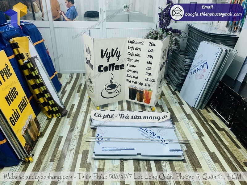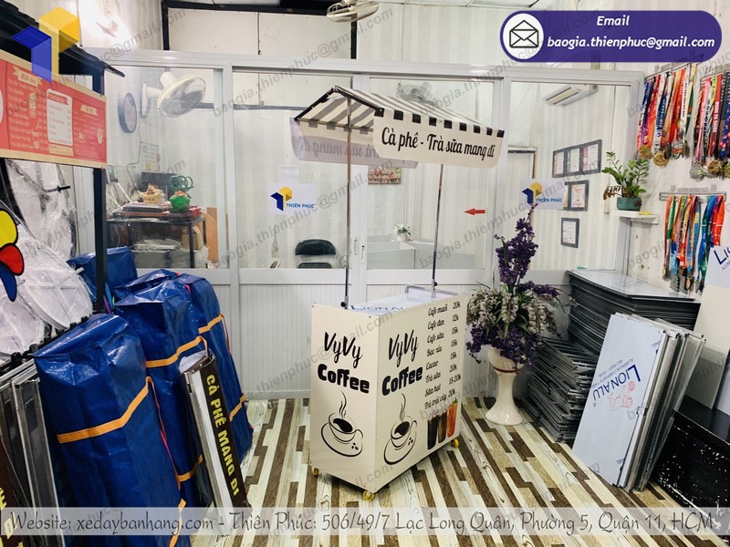Quầy gấp gọn bán hàng được sử dụng trong các chiến dịch marketing tại điểm bán. Mục đích của các quầy bán hàng này để bán hàng giới thiệu sản phẩm, quảng bá thương hiệu. Để lựa chọn xe bán café lưu động thích hợp, bạn cần dựa vào không gian, nhu cầu, mục đích của doanh nghiệp. Giá cả cũng sẽ dao động dựa vào thiết kế và chất liệu.