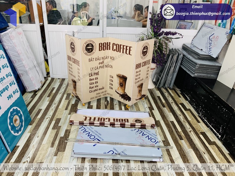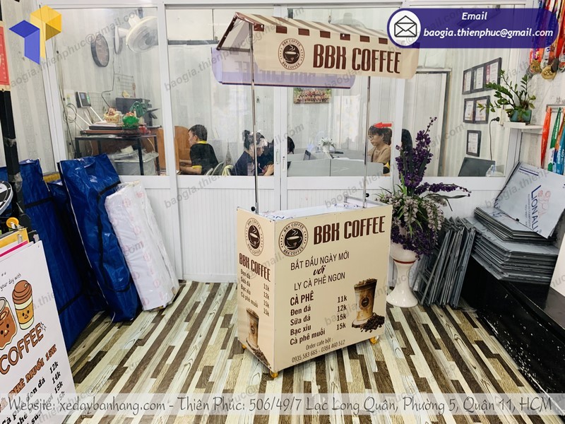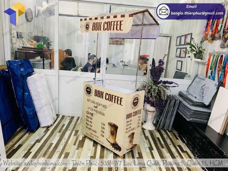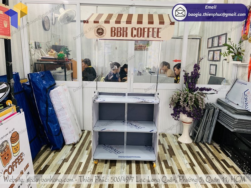 Quầy gấp gọn bán hàng được sử dụng trong các chiến dịch marketing tại điểm bán. Mục đích của các quầy bán hàng này để bán hàng giới thiệu sản phẩm, quảng bá thương hiệu. Để lựa chọn xe gấp M bán cafe thích hợp, bạn cần dựa vào không gian, nhu cầu, mục đích của doanh nghiệp. Giá cả cũng sẽ dao động dựa vào thiết kế và chất liệu.