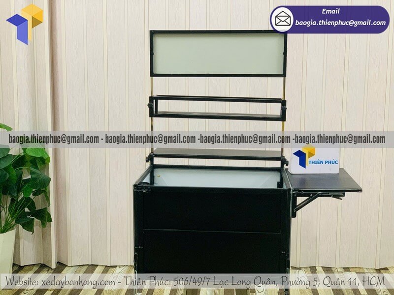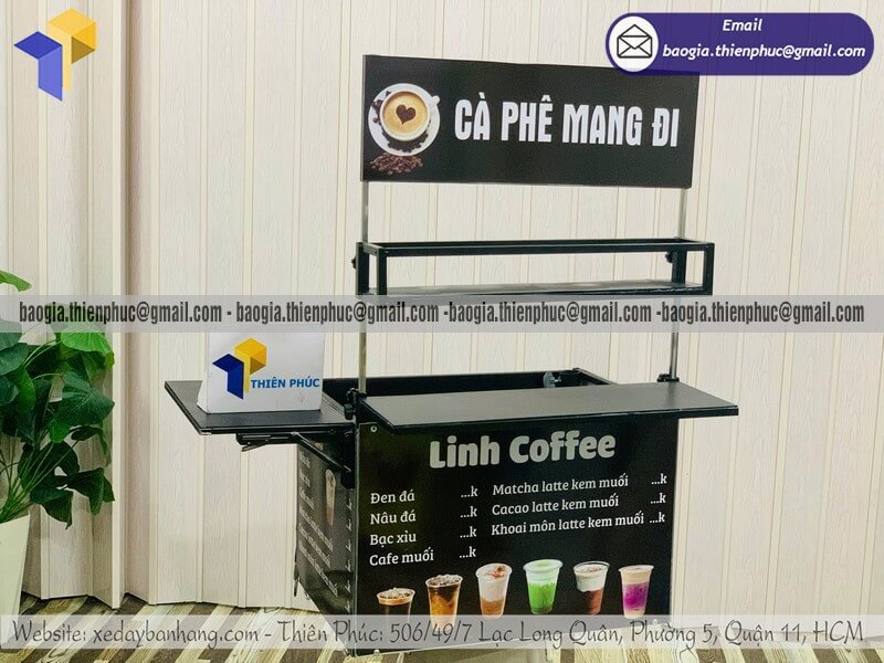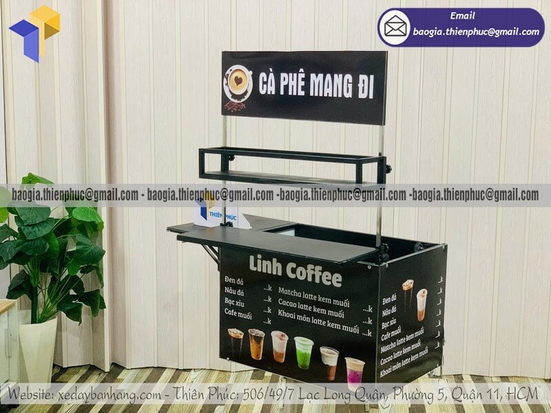 Mặt trên được thiết kế phẳng, đủ không gian pha chế nhanh, phù hợp bán cafe take away, cafe sữa, bạc xỉu, trà sữa, nước ép, sinh tố.