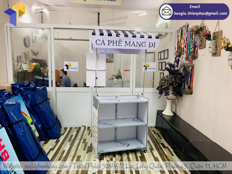 Giá quầy bán cafe di động bán tại Thiên Phúc được xếp #1 RẺ nhất trên thị trường. Các mẫu có sẵn được tạo từ inox 100%, ngoài ra còn nhận chế tạo theo yêu cầu khách hàng.