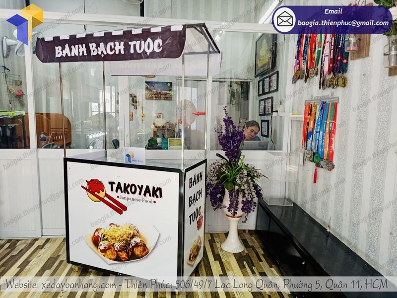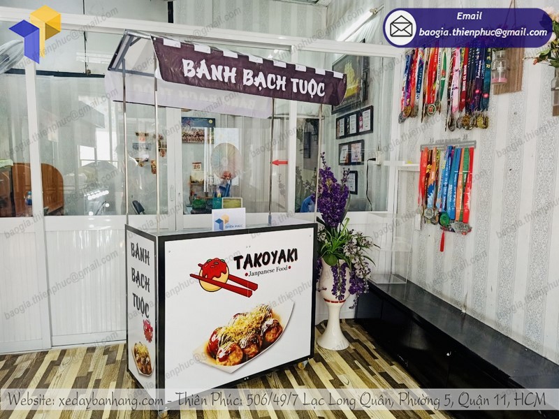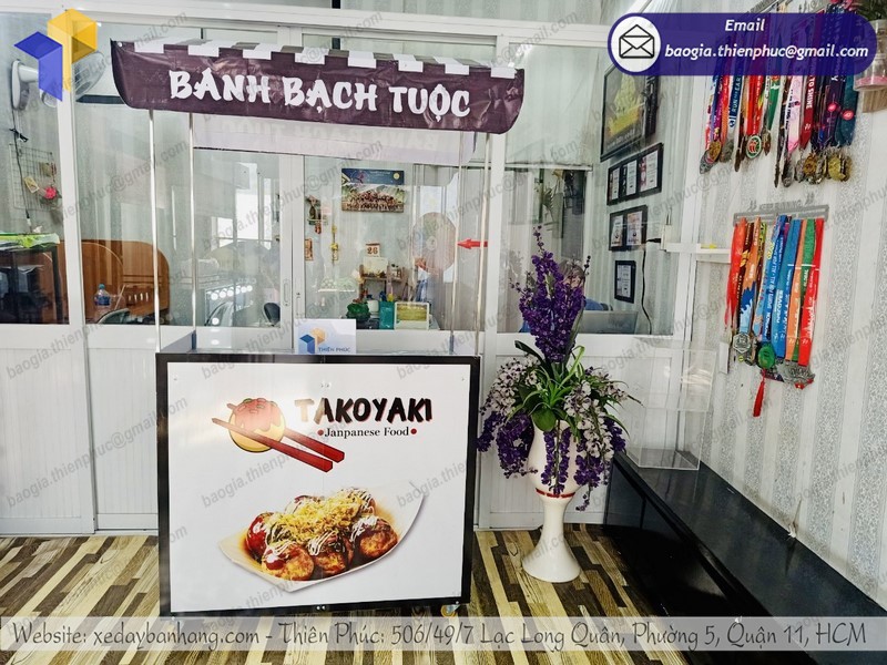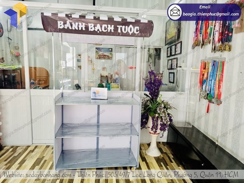 - Quầy kệ bán thức ăn giúp bảo quản hàng hóa không bị rò rỉ nước nhờ có phông bạt và mái che đạt tiêu chuẩn. Vừa bán hàng và vừa có thể vận chuyển hàng hóa nhanh chóng.