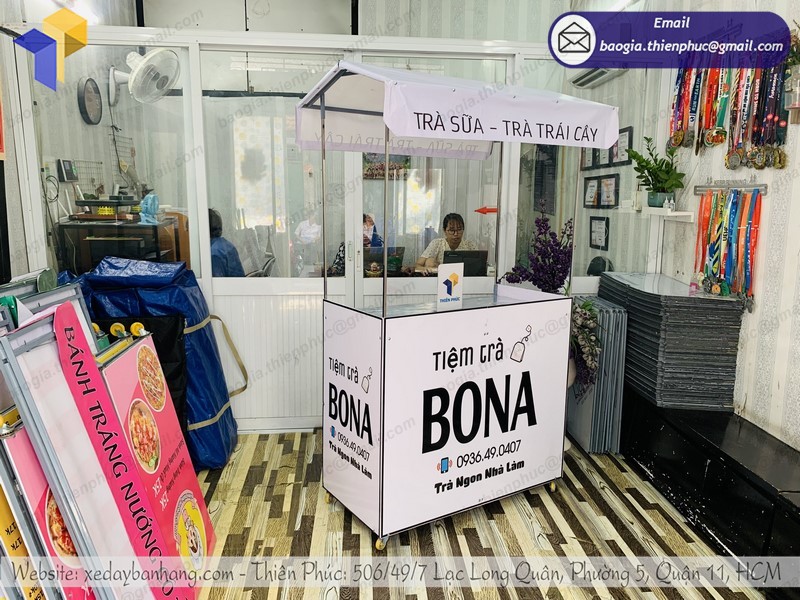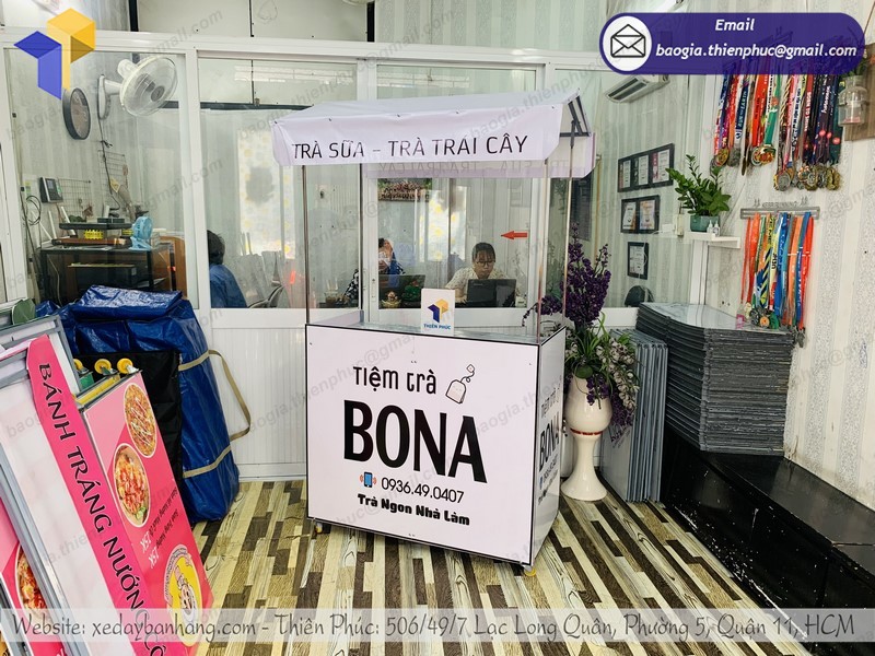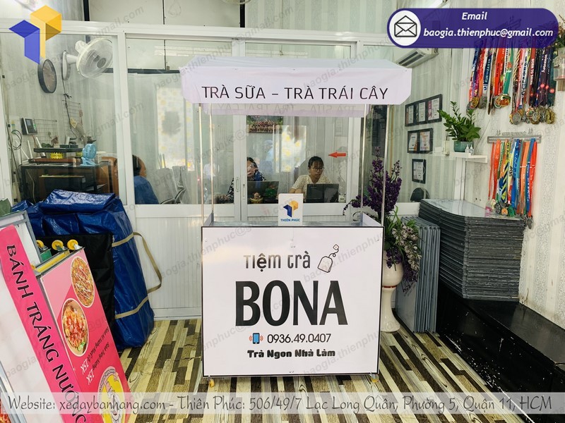 - Vấn đề ô nhiễm khói bụi do các loại xe máy, xe ô tô, bụi bẩn dẫn tới thực phẩm bị ô nhiễm ảnh hưởng trực tiếp tới sức khỏe của người dùng. Những đồ uống đã được chế biến sẵn nếu cứ để bày la liệt như trước kia thì việc khói bụi bám vào là điều không thể tránh khỏi. xe gấp gọn TIỆM TRÀ BONA là sự lựa chọn đúng đắn cho những người bán hàng lưu động khi muốn bán đồ uống ngay: trà tắc, sữa tươi, sữa đậu nành,….