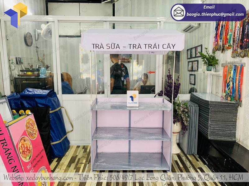 - Xe đẩy gọn nhẹ, trưng bày và đựng nhiều đồ đạc buôn bán tiện lợi, không cồng kềnh, dễ dàng thao tác sử dụng.