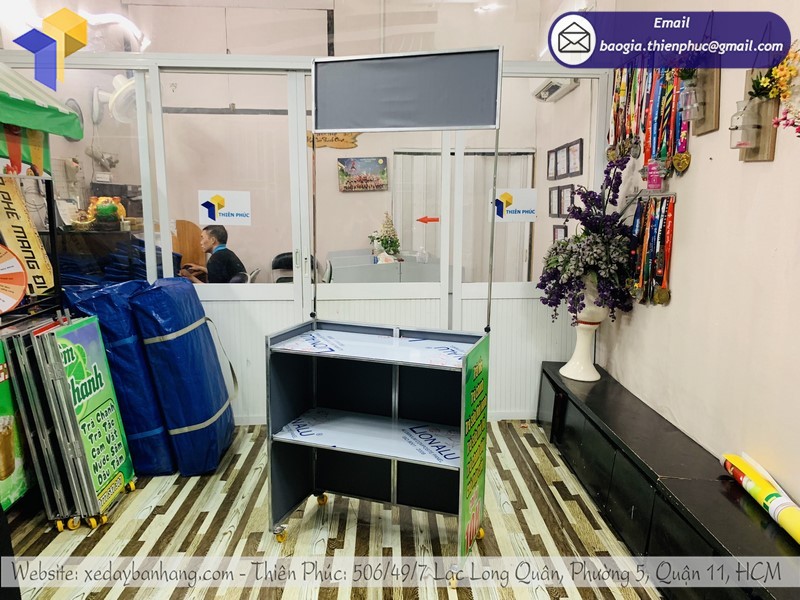 - Xe đẩy gọn nhẹ, trưng bày và đựng nhiều đồ đạc buôn bán tiện lợi, không cồng kềnh, dễ dàng thao tác sử dụng.