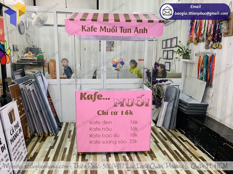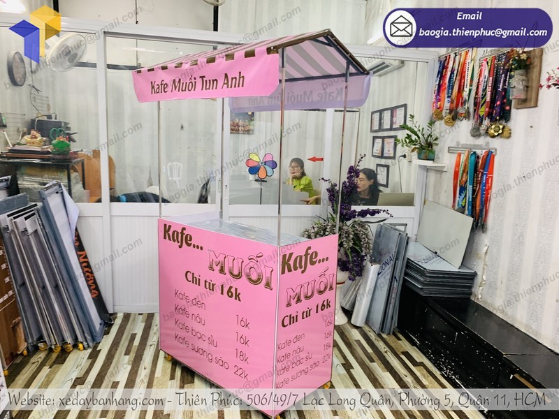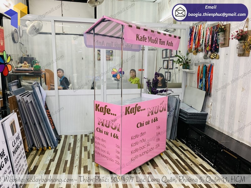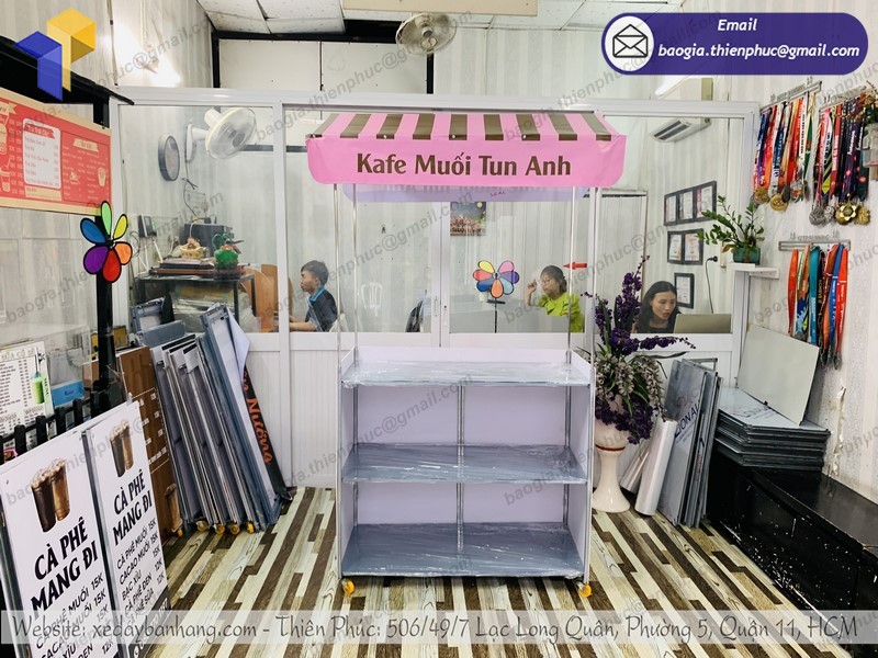 Hiện nay một trong những địa chỉ bán xe đẩy bán hàng lưu động chất lượng với mức giá hợp lý nhất đó chính là xưởng xe Thiên Phúc. Tại đây cung cấp các dòng xe bán cà phê đa dạng. Sản phẩm được gia công với chất liệu tốt nhất. Đảm bảo sự đầu tư hợp lý, tiết kiệm và năng suất làm việc nhất cho người dùng.