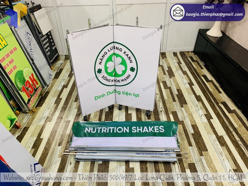 Booth bán hàng cũng rất nhỏ gọn, rất thuận tiện để di chuyển. Nó sẽ giúp cho việc luân chuyển ra các điểm bán hàng dễ dàng và tiết kiệm chi phí cho công ty.
