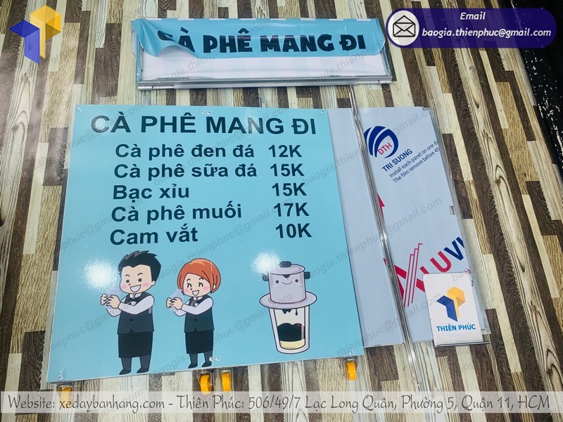 Bạn muốn sở hữu một chiếc xe cafe hoặc dụng cụ mang đến dấu ấn riêng, thu hút khách hàng. Tại Thiên Phúc nhận gia công các thiết bị máy móc theo mong muốn của khách hàng, thiết kế banner theo thương hiệu.