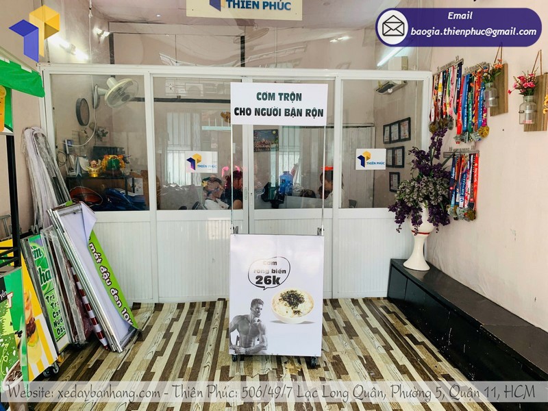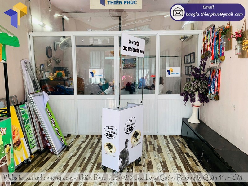 Bên cạnh cung cấp xe bán cơm trộn mini, Thiên Phúc còn cung cấp đa dạng các loại xe đẩy bán hàng khác như: xe bán cà phê, xe đạp bán hàng, kiot bán hàng, xe lắp ráp, booth quảng cáo, thùng phiếu, vòng quay, standee,… với chất lượng đi đầu trên thị trường. Sự đa dạng trong mẫu mã, chủng loại, sự phong phú trong giá cả sản phẩm tại Thiên Phúc luôn đáp ứng và làm hài lòng quý khách hàng.