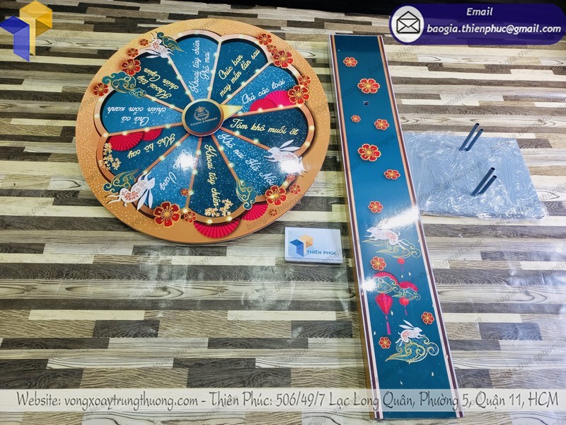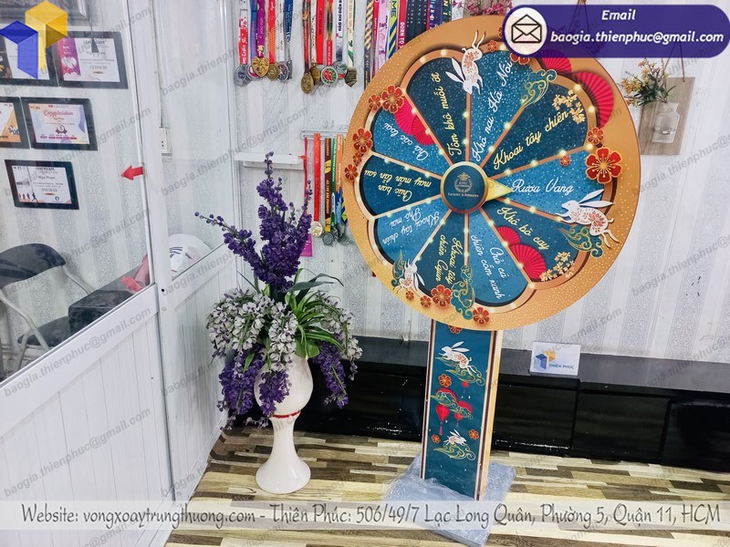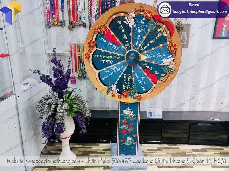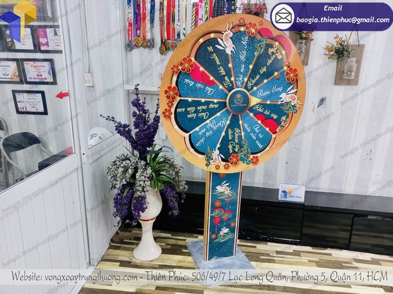 Tại Thiên Phúc, chúng tôi chuyên có cách làm vòng quay trúng thưởng đa dạng, bạn có thể đến hoặc liên hệ để lựa chọn mẫu mã chất liệu bất cứ lúc nào. Bên cạnh những mẫu mặt hàng có sẵn, chúng tôi cũng nhận dịch vụ lên ý tưởng thiết kế theo ý muốn của khách hàng, bạn sẽ nhận được chiếc vòng quay độc đáo cho mình, phù hợp nhu cầu sử dụng, độc lạ và đẹp mắt.
