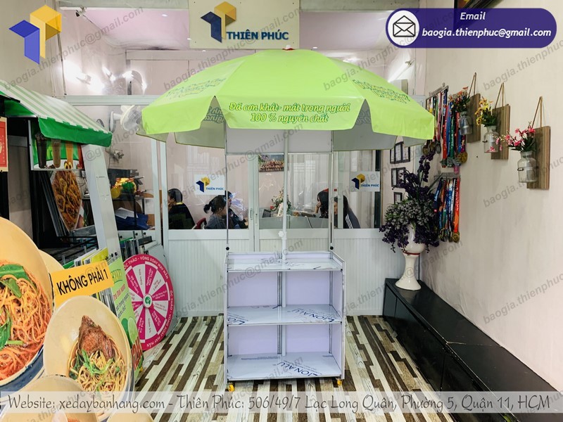 Đến trực tiếp cơ sở sản xuất chứng kiến các mẫu xe bán trà hoa quả lưu động đang được gia công hoặc tham khảo kiểu dáng trên website, cataloge Thiên Phúc.