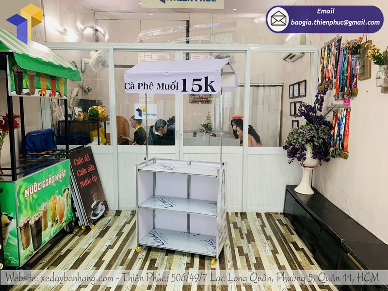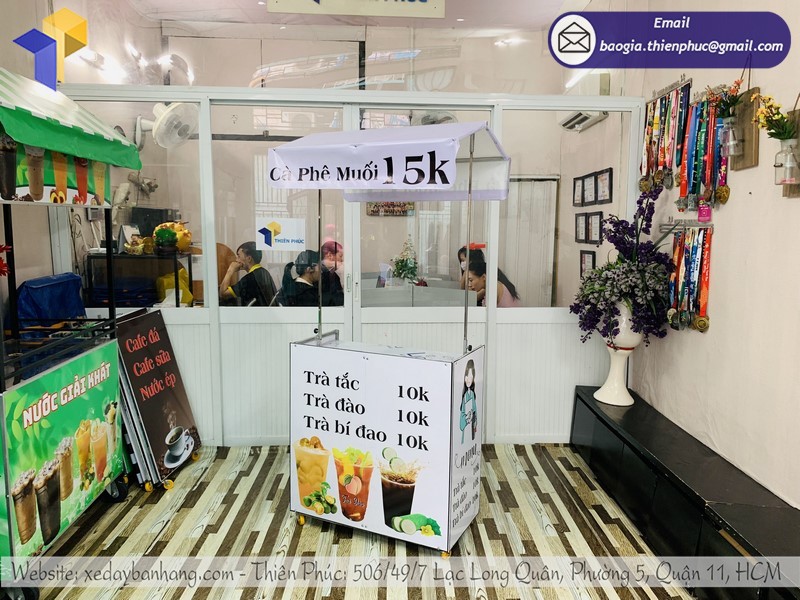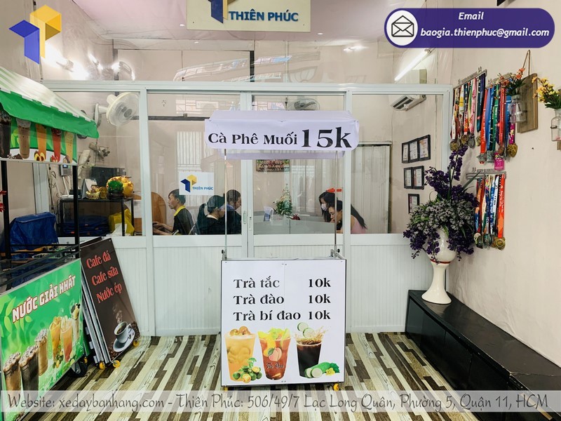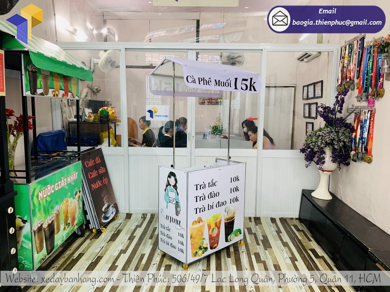 Thiên Phúc tư vấn xe bán cafe xếp gọn theo yêu cầu khách hàng với nhiều kiểu dáng xe đẹp, hình ảnh thu hút giúp làm nổi bật thương hiệu của cửa hàng.