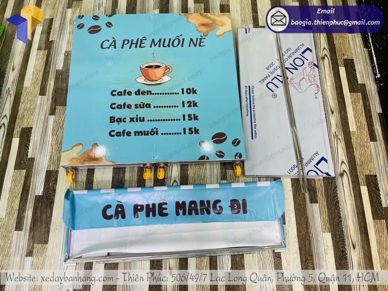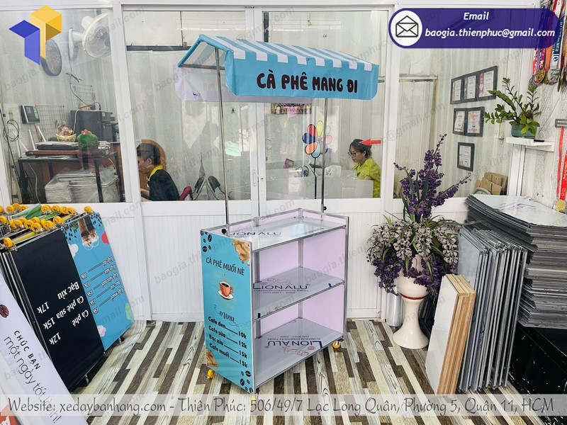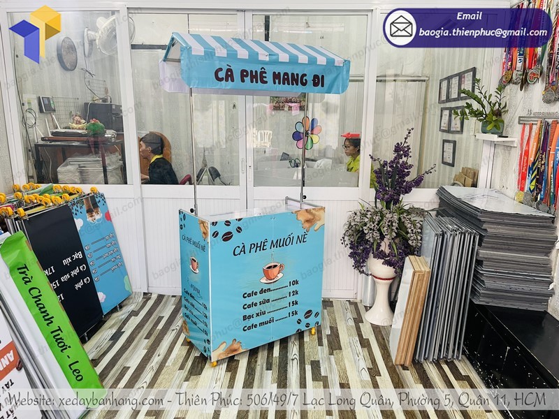 Không chỉ xe đẩy bán cafe mà tất tần tật từ xôi, bánh bao, nước mía, trà sữa, bánh mì chả cá… đều được Thiên Phúc phân phối, giá siêu “hạt dẻ”. Các sản phẩm đầy đủ kích cỡ, size nhỏ 0.9m đến size to 2m. Đảm bảo đáp ứng được mọi quy mô kinh doanh, mỗi ngày vài trăm ổ đến vài ngàn ổ đều có thể sử dụng được tốt.