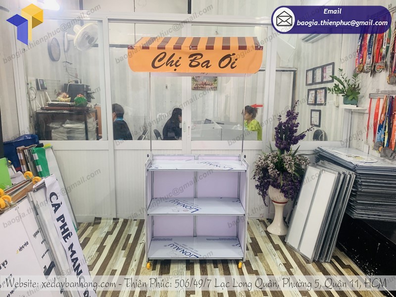 - Trang trí chiếc xe đẩy bán hàng thật ấn tượng