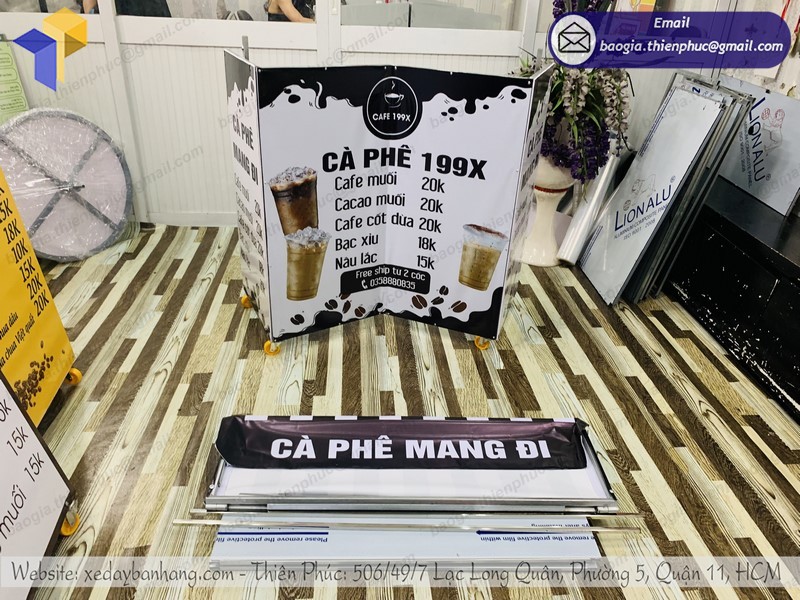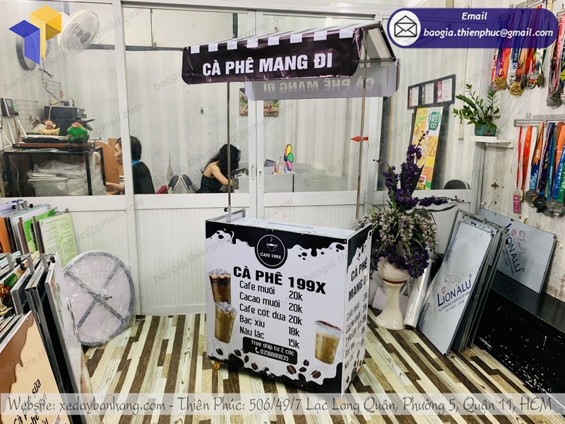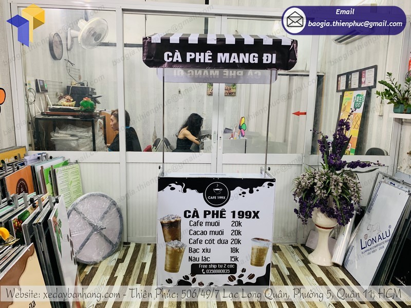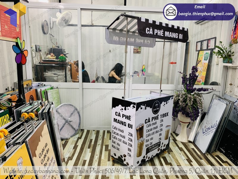 Xe cafe take away gấp gọn là sản phẩm hữu hiệu để quảng cáo tại điểm bán vỉa hè nên các nhãn hiệu mới ra đời và các nhãn hiệu mong muốn đẩy nhanh doanh số, tăng thị phần đều nên dùng xe lắp ráp bán hàng Thiên Phúc