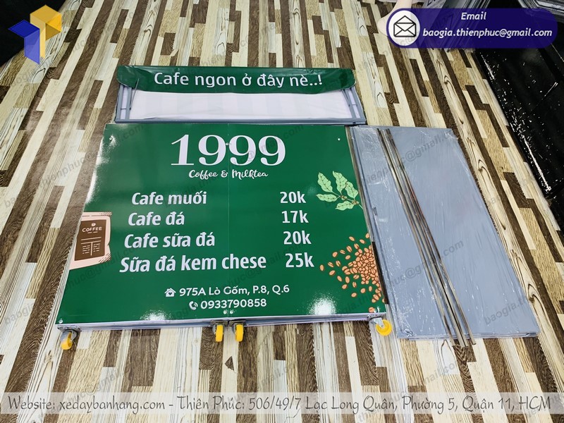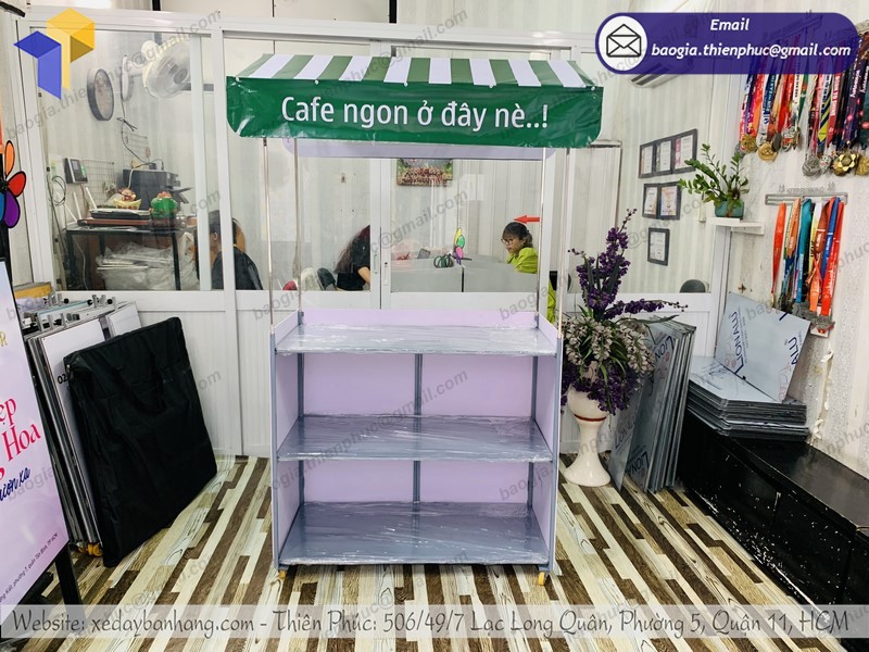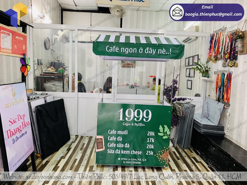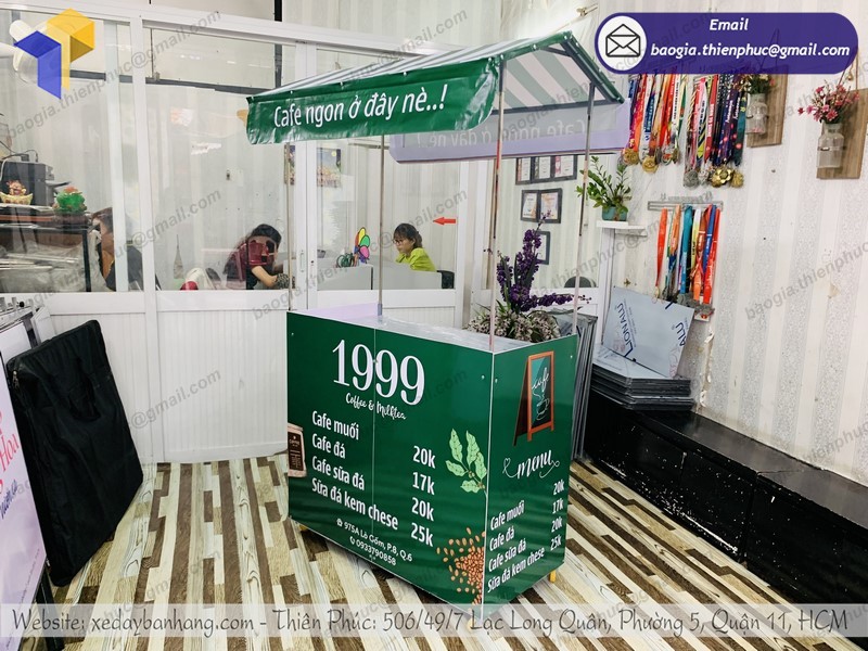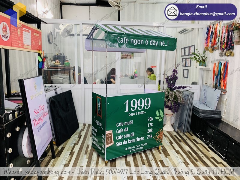 Công ty thiết kế và thi công quảng cáo Thiên Phúc chuyên sản xuất và phân phối xe lắp ráp bán cà phê lưu động với nhiều mẫu mã đẹp mắt. Ngoài xe đẩy, còn có kiot bán hàng, xe đạp bán hàng lưu động, quầy xe lắp ráp và phụ kiện quảng cáo, tủ kiếng,..