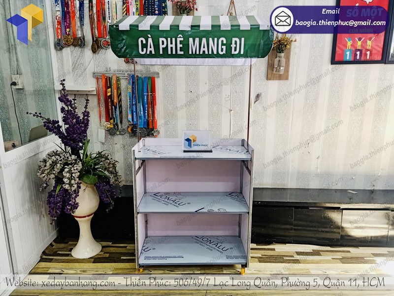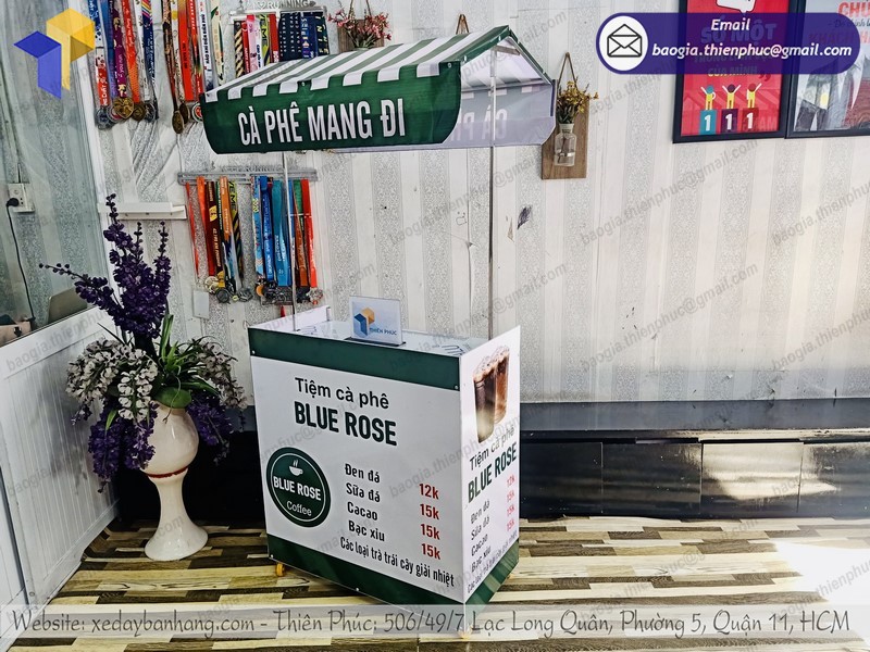 Giá quầy bán cafe di động bán tại Thiên Phúc được xếp #1 RẺ nhất trên thị trường. Các mẫu có sẵn được tạo từ inox 100%, ngoài ra còn nhận chế tạo theo yêu cầu khách hàng. Trợ giá giao hàng tận tay trên toàn quốc, hỗ trợ công tác lắp đặt, vận hành giai đoạn đầu.