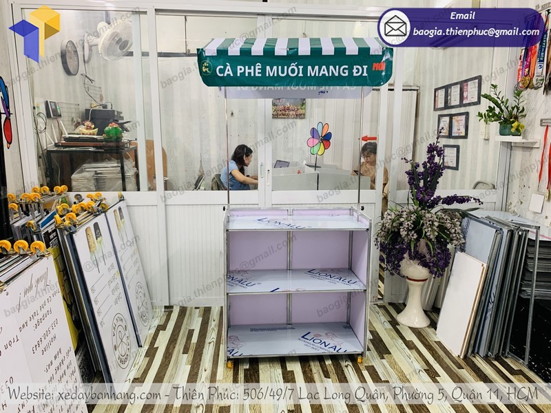 Chẳng cần phải đầu tư quá nhiều các bạn có thể sở hữu một chiếc xe đẩy bán hàng chuyên nghiệp nhất. Xe bán café take away với đủ không gian để các bạn có thể chế biến đồ uống ngon, đảm bảo an toàn vệ sinh thực phẩm tối ưu. Tủ cũng tích hợp đầy đủ tiện ích bao gồm tủ đựng tiền, mặt bàn chế biến, bảng menu và kệ ly đi kèm. Tất cả mang đến thiện cảm tốt cho khách hàng ghé quán.