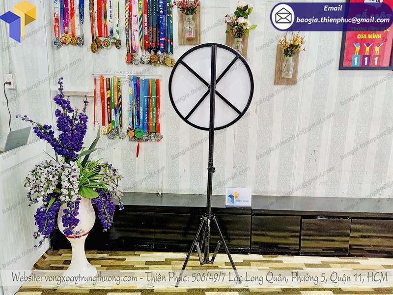 - Không gian để vòng quay rộng hay hẹp, trong nhà hay ngoài trời: khi xác định được không gian thì bạn sẽ chọn lựa được loại vòng quay để bàn hay vòng quay chân trụ, chân đứng hay chân xếp và chọn được chất liệu in tốt nhất.