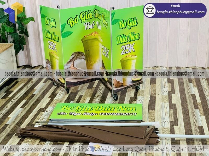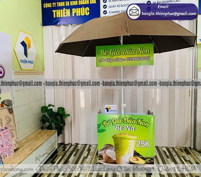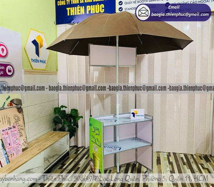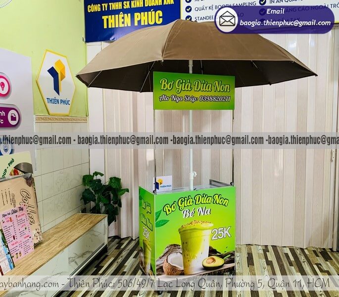 Thích hợp: cho các bạn trẻ kinh doanh ít vốn mở bán trà sữa, cà phê lưu động, hoặc các đại lý muốn mở rộng kênh bán hàng lưu động xe bán cafe gắn dù