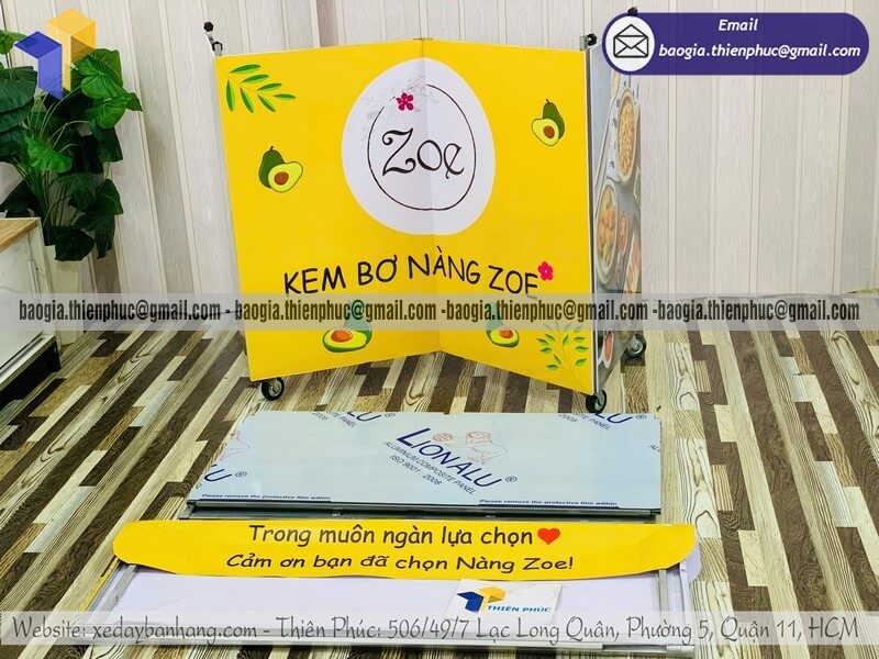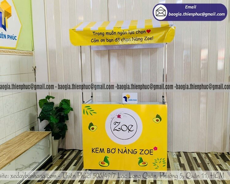 - Tăng nhận diện thương hiệu: Phần mặt trước và hai bên quầy là không gian tuyệt vời để in ấn logo, thực đơn và màu sắc đặc trưng. Chiếc quầy bán hàng gấp gọn lúc này đóng vai trò như một biển quảng cáo di động, thu hút ánh nhìn từ xa.