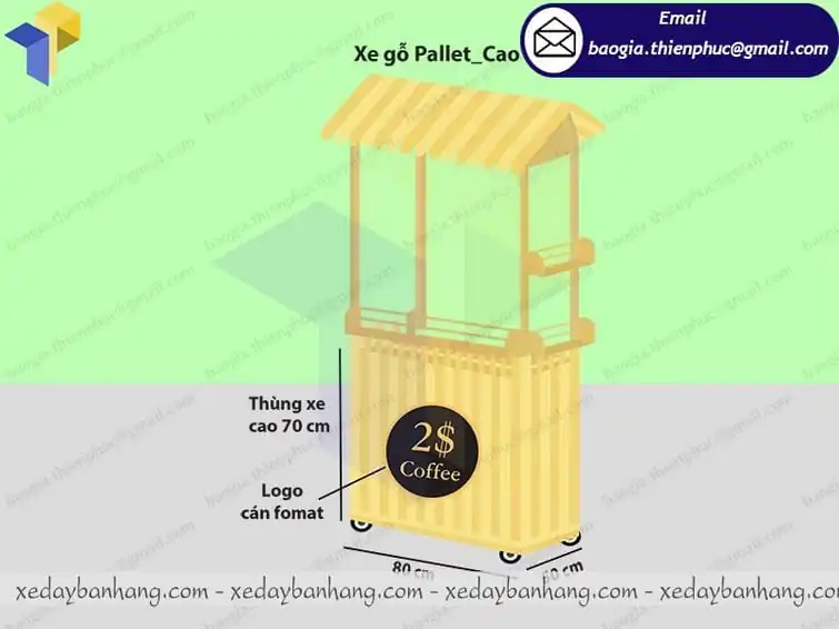 Xu hướng kinh doanh mới của các chủ kinh doanh cà phê lưu động là đóng xe gỗ pallet giá rẻ, đơn giản, mộc mạc nhưng đầy sáng tạo.Từ khi xu hướng này xuất hiện nhận được sự hưởng ứng của khá nhiều người. Chính vì vậy mà thời gian gần đây số lượng tiêu thụ xe gỗ pallet giá rẻ ngày càng cao, lượng đặt hàng đóng xe gỗ bán cafe mộc ngày càng nhiều. Nhận ra những mặt tích cực trên Thiên Phúc thiết kế ra nhiều mẫu xe gỗ bán cafe mộc độc đáo nhằm kích thích nhu cầu về xe gỗ bán cafe mộc của khách hàng.