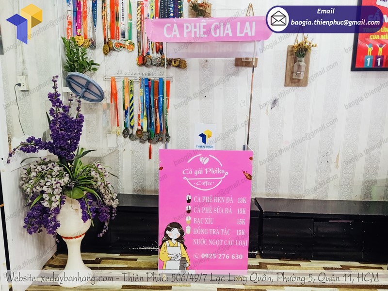 Bạn đang không biết nên mua xe bán cafe vỉa hè ở đâu? Làm sao để chọn được 1 công cụ bán hàng chất lượng? Vậy thì hãy đến với công ty Thiên Phúc. Với hơn 10 năm kinh nghiệm trong sản xuất, phân phối các loại xe đẩy bán hàng rong. Chúng tôi tự tin đem lại cho bạn sản phẩm ưng ý nhất.