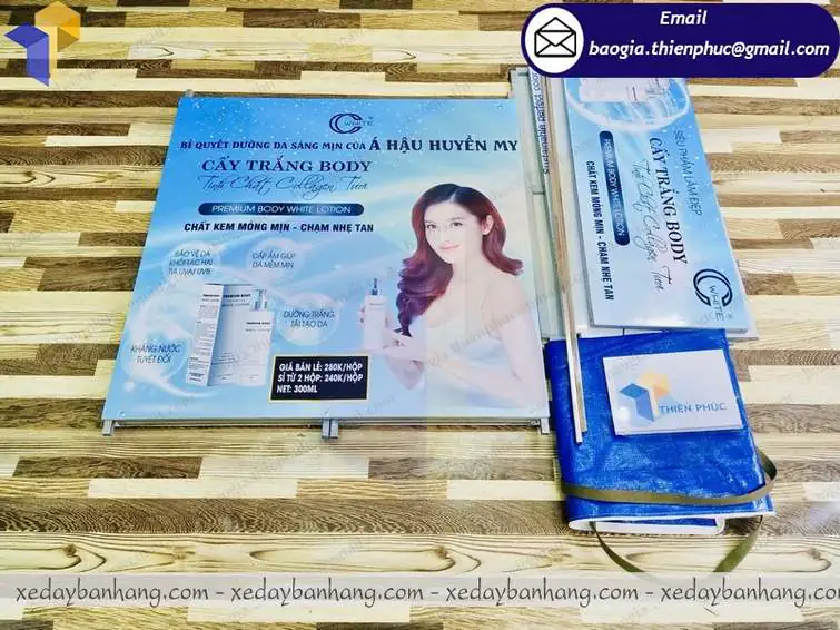 Và một điều nữa đó chính là booth sắt trưng bày mỹ phẩm, có thể xếp gọn bỏ vào túi rất dễ dàng cho các bạn nữ mang đi khi muốn chuyển địa điểm bán hàng hay chạy sản phẩm.
