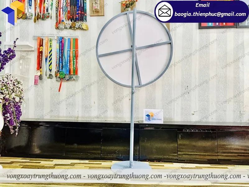 Hãy đến với Thiên Phúc khách hàng sẽ được tư vấn chọn kiểu dáng cũng như kích thước mẫu vòng quay trúng thưởng đẹp nhận phần thưởng phù hợp với không gian sự kiện của quý vị nhé. Hãy nhanh tay gọi qua Hotline/Zalo: 0903.897.980 – 093.443.0323 cho xưởng Thiên Phúc