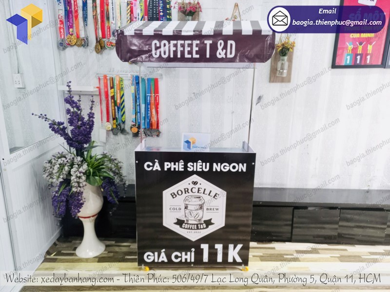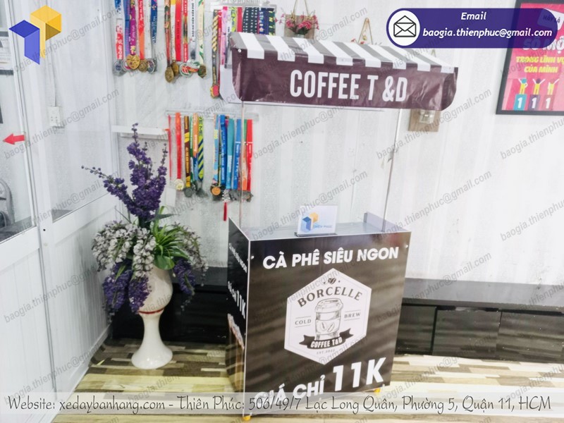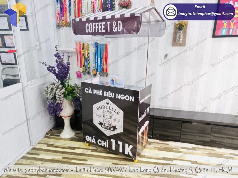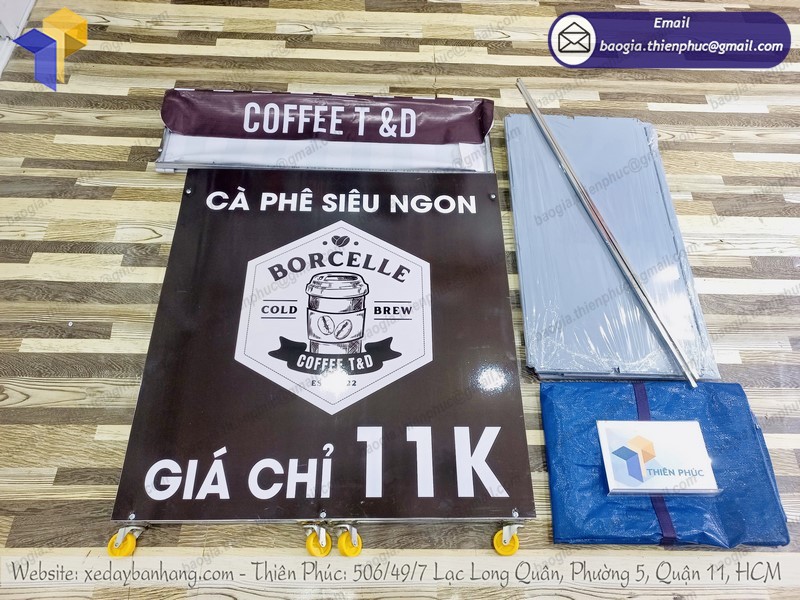 Ngoài việc phân phối các thiết bị bếp công nghiệp, Thiên Phúc còn sản xuất xe đẩy bán cà phê. Đặc biệt hơn, xưởng chế tạo cùng đội ngũ KTV sẽ gia công theo đúng yêu cầu khách hàng. Nếu đã có bản vẽ hoặc ý tưởng về mẫu xe mong muốn, hãy đến với Thiên Phúc. Công ty đảm bảo sẽ thúc đẩy quá trình và giao hàng trong thời gian ngắn nhất. Chất liệu, hình thức, trang trí,… đều dựa theo sở thích của khách hàng.