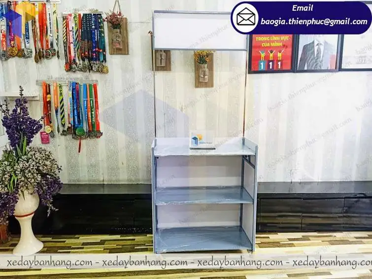 + Mặt trên quầy và vách ngăn bên trong bằng khung sắt ốp alu chống thấm nước