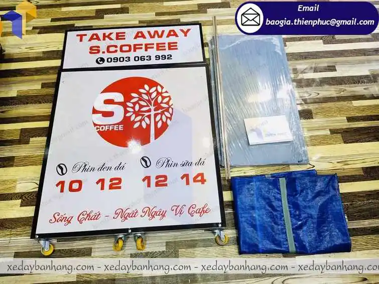 Việc dán decal mang màu sắc thương hiệu của bạn lên chiếc booth sắt bán cafe vỉa hè giúp bạn có thể quảng bá thương hiệu của mình một cách dễ dàng. Ngoài ra khung xe rất chắc chắn được mã kẽm chống gỉ sét và được trang bị thêm bốn bánh cường lực giúp bạn linh hoạt di chuyển quầy hàng của mình một cách dễ dàng hơn.