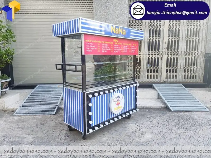 Việc đóng những chiếc xe sắt bán trà sữa vỉa hè dễ thương di động cứ việc để cho công ty Thiên Phúc – công ty chuyên cung cấp xe sắt bán trà sữa vỉa hè giá rẻ giúp bạn. Chúng tôi tự hào là đơn vị kinh doanh xe đẩy bán hàng với nhiều năm kinh nghiệm với giá rẻ nhất thị trường.