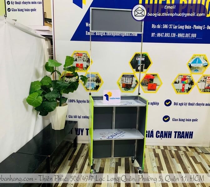 Thiết kế quầy đơn giản, sử dụng chất liệu nhẹ như inox, nhôm, nhựa composite nên dễ dàng lắp ráp, tháo rời và vận chuyển bằng xe máy hoặc xe ba gác.