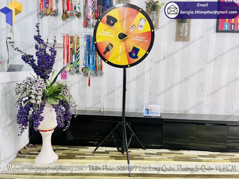 - Ngoài cung cấp sản phẩm vòng quay mini game chân xếp, chúng tôi còn cung cấp nhiều loại vòng quay trúng thưởng khác và chúng luôn nằm sẵn trong kho hàng như: vòng quay để bàn, vòng quay chân xếp, vòng quay chân trụ, booth bán hàng,…