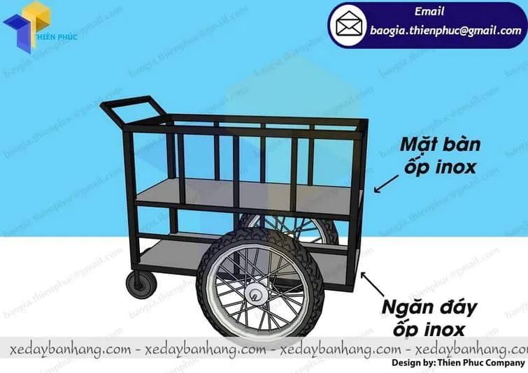 Xưởng sản xuất Thiên Phúc đã không ngừng sáng tạo, thiết kế tỉ mỉ từng chi tiết để cho ra những mẫu xe bán hàng lưu động hiện đại, tiện ích, mẫu mã đa dạng, phù hợp với từng món ăn kinh doanh, nhưng mức giá lại thấp. Bởi với Thiên Phúc, lợi ích của khách hàng là trên hết. Thế bạn đã có ý định mua xe 3 bánh bán hàng tại Thiên Phúc chưa, hãy liên hệ ngay với chúng tôi qua hotline 0903897980 nhé !