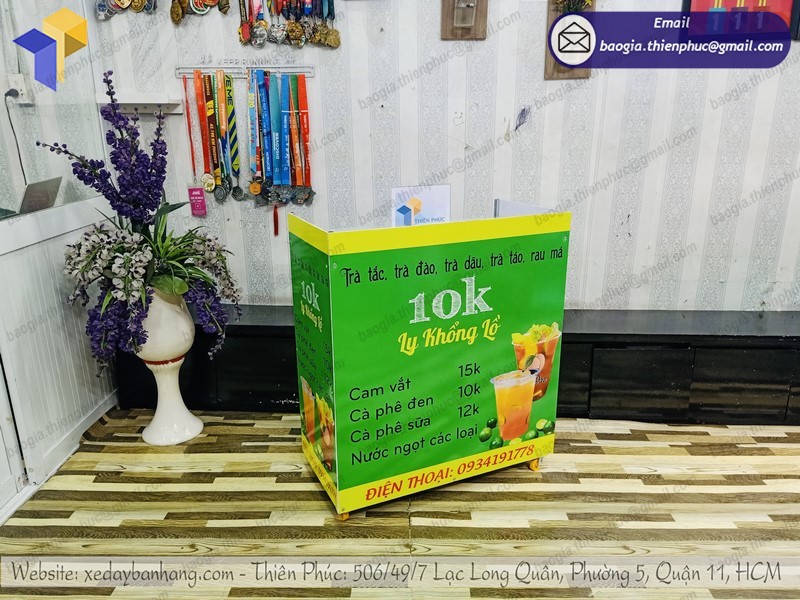 Nắm bắt được những xu thế kinh doanh ngành thức ăn nhanh, đồ ăn vặt cho giới trẻ, Thiên Phúc chúng tôi đơn vị tiên phong sản xuất, thiết kế xe lắp ráp bán trà tắc dạo tiện lợi giá rẻ với nhiều kích thước, mẫu mã đa dạng, rất độc đáo, sáng tạo, đẹp và rất nhiều những tiện lợi với mức giá phải chăng. Một dòng thiết kế xe bán hàng lưu động giá rẻ được thiết kế với đầy đủ tiện ích đáp ứng nhu cầu cho các quý vị khởi nghiệp với số vốn ít ỏi.