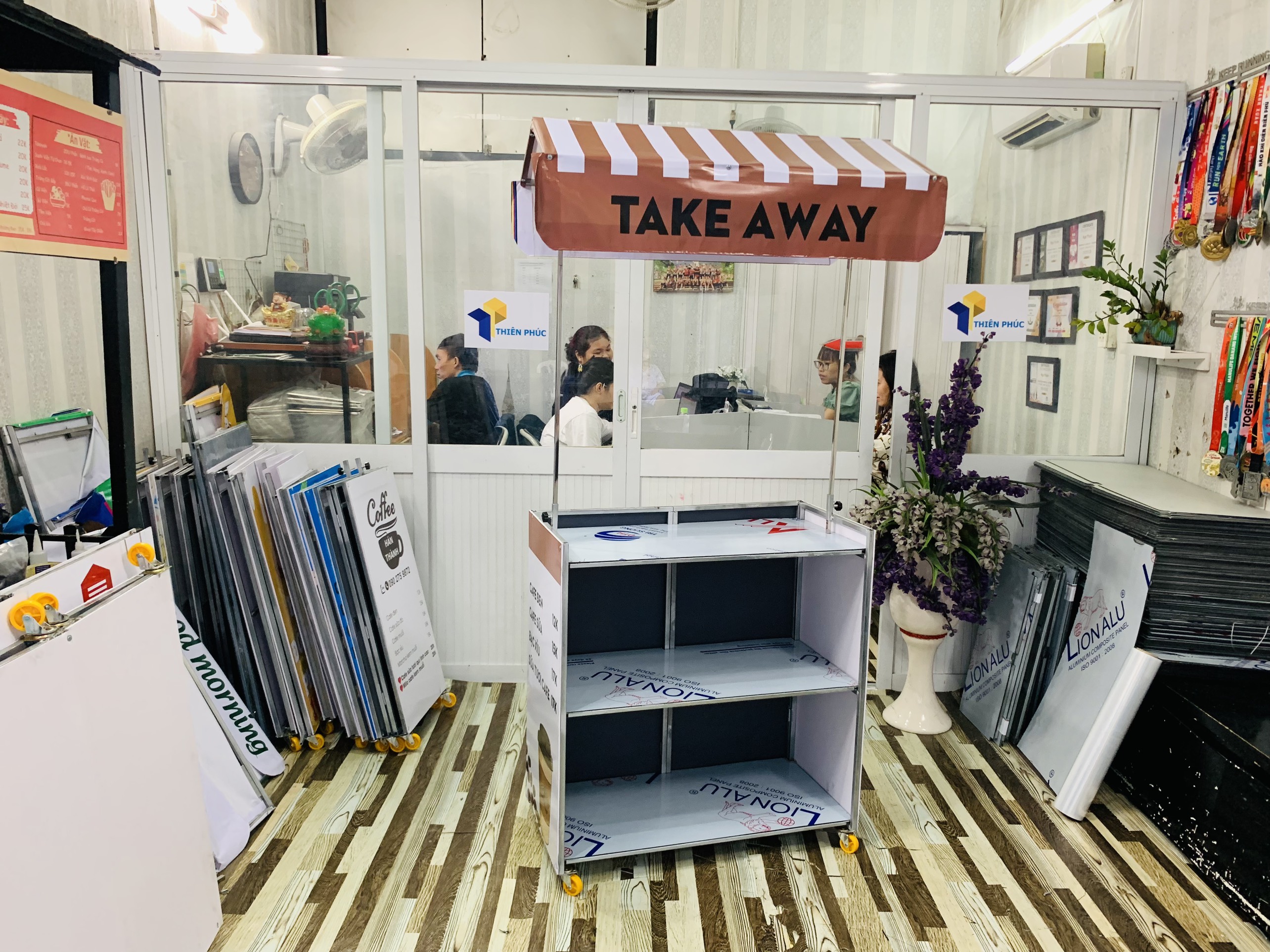 Xe bán cà phê lắp ráp được thiết kế tại Thiên Phúc chúng tôi luôn luôn đảm bảo chất lượng, sự tiện ích, dễ dàng di chuyển và giá cả phải chăng. Sản phẩm đầy chất lượng, giá cả của sản phẩm hợp lý. Vận chuyển một cách dễ dàng, di chuyển đến mọi lúc mọi nơi.