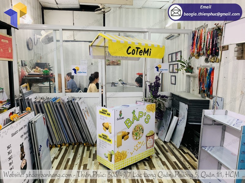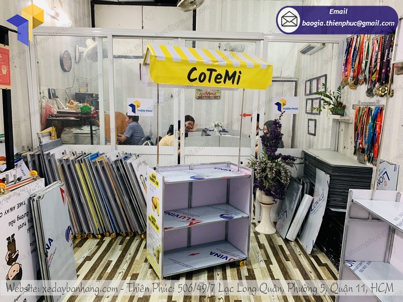 Thiên Phúc là nơi cung cấp các giải pháp thiết kế và thi công xe đẩy bán hàng. Đồng thời, cũng là thương hiệu xe bán hàng lưu động được nhiều người tin dùng và sử dụng. Ngoài ra, con nhận gia công theo nhu cầu và mong muốn của khách hàng. Chúng tôi luôn đặt tiêu chí “ sự hài lòng của quý khách là niềm tự hào của chúng tôi”. Tại Thiên Phúc có vô vàn mẫu mã đa dạng, giá cả phù hợp; chất lượng và uy tín trải dài khắp 64 tỉnh thành với hệ thống vận chuyển xuyên suốt 3 miền với thời gian nhanh nhất.