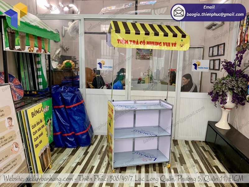 Xưởng sản xuất xe đẩy bán hàng Thiên Phúc không ngừng tìm tòi sáng tạo, đi kịp xu hướng trào lưu, cho ra đời những mẫu quầy lắp ráp bán trà di động đẹp mắt, ấn tượng, tạo sự thu hút thiện cảm cho người đi đường và quan trọng nhất vẫn là giá cả phải hợp lý, tốt nhất trên thị trường.