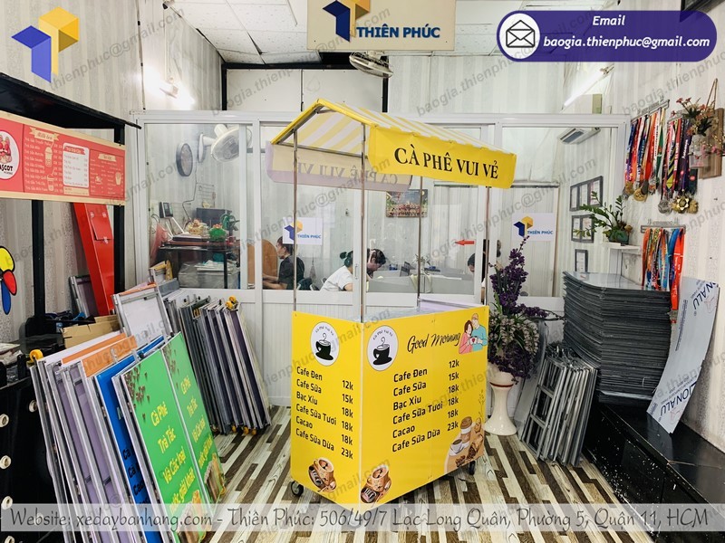 Khách hàng nếu có nhu cầu xe xếp gọn bán cà phê 1 mét có thể đến ngay với công ty quảng cáo Thiên Phúc của chúng tôi. Chất lượng đảm bảo, thiết kế tiện dụng, giá cả hợp lý, đó là những tiêu chí của một chiếc xe bán hàng lưu động đẹp mà chúng tôi cam kết thực hiện.