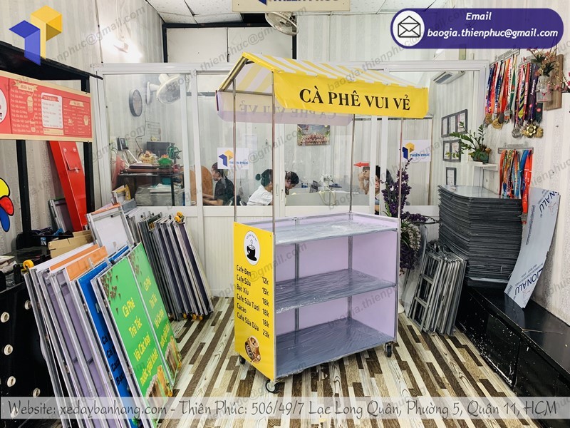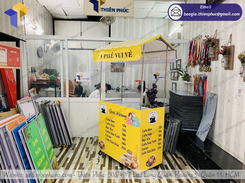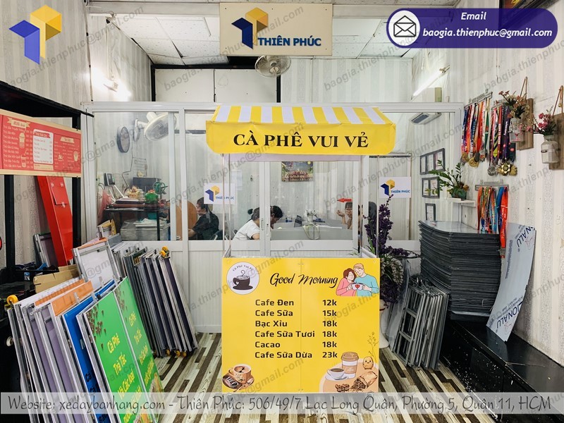 Xưởng Thiên Phúc là đơn vị thiết kế, sản xuất những mẫu xe bán hàng, cafe, trà sữa số một tại TP. HCM. Với nhiều thiết kế sáng tạo, chất liệu cao cấp sẽ giúp bạn có một chiếc xe xếp gọn bán cà phê 1 mét của bạn ấn tượng, tiếp cận được nhiều khách hàng hơn. Thiết kế 3D giúp bạn dễ hình dung được mà không cần phải đợi đến lúc sản xuất xong, đó là một lợi thế nếu bạn sửa dụng sản phẩm tại Thiên Phúc.