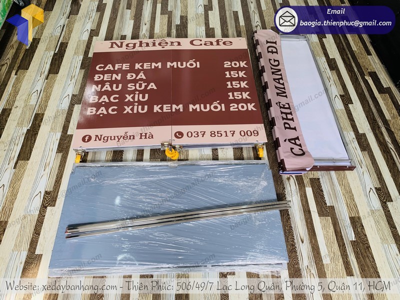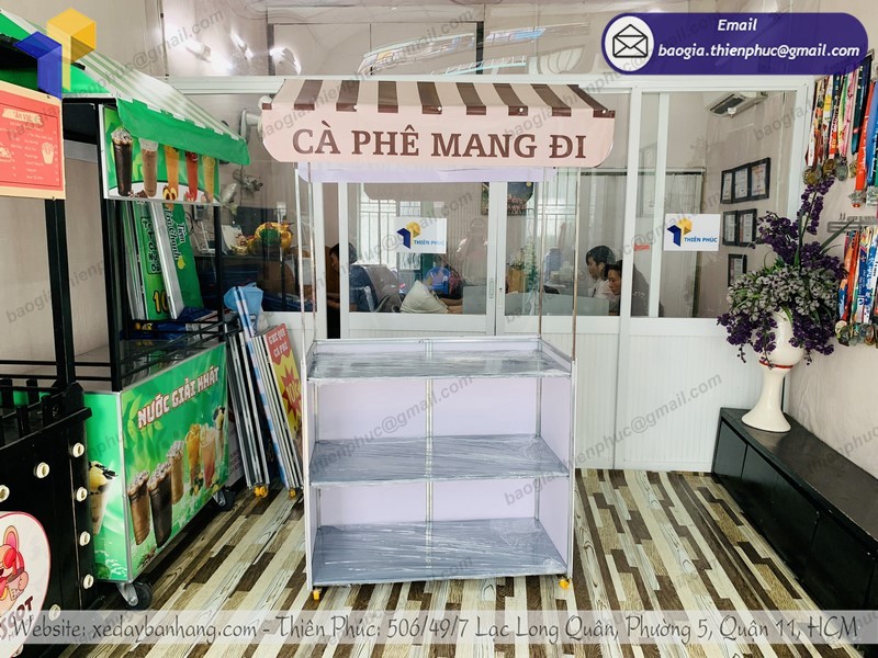 Vậy là Thiên Phúc đã giới thiệu xong với bạn mẫu xe cà phê vừa thông minh vừa tiện lợi. Nếu quý khách hàng còn vấn đề nào chưa được giải đáp hay muốn mua xe cà phê xếp gọn thì hãy liên hệ vơi Thiên Phúc qua hotline 0903 897 980 hoặc đến văn phòng của chúng tôi tại: 506/49/7 Lạc Long Quân, Phường 5, Quận 11, TP Hồ Chí Minh