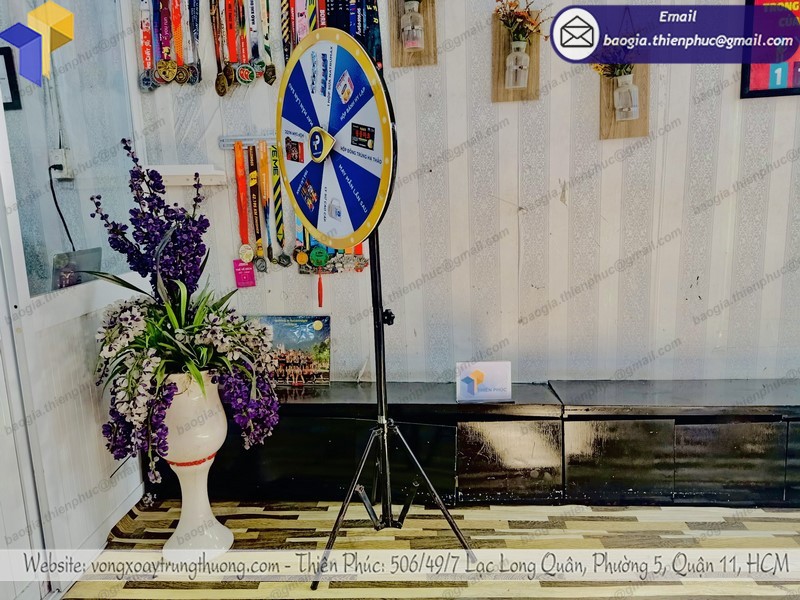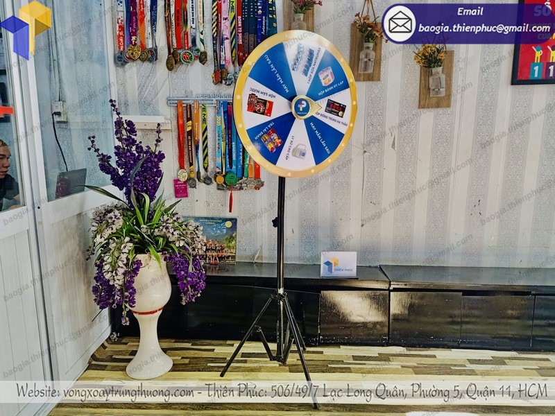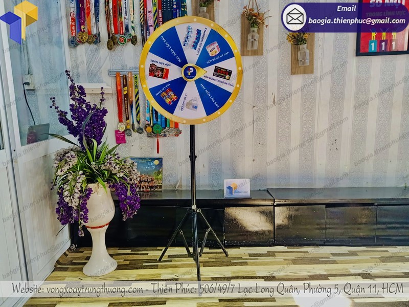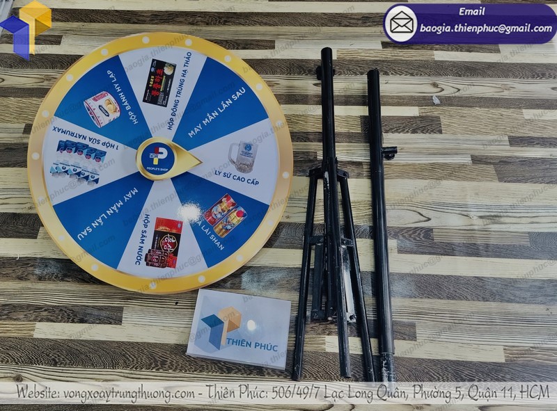 Vòng quay chân xếp may mắn là 1 trong những vật phẩm được sử dụng nhiều. Do phù hợp với nhiều nhu cầu sử dụng cho các công ty chạy chương trình. Điển hình là quay số may mắn, tri ân khách hàng, tạo hiệu ứng sôi động cho các chương trình,.... Ngoài những tính năng kể trên, thì ai cũng biết đến chức năng quảng bá thương hiệu mà sản phẩm vòng quay may mắn mang lại vô cùng hiệu quả. Hãy cùng Thiên Phúc tìm hiểu rõ về những ưu điểm của mẫu vòng quay may mắn thúng thưởng này nhé!!