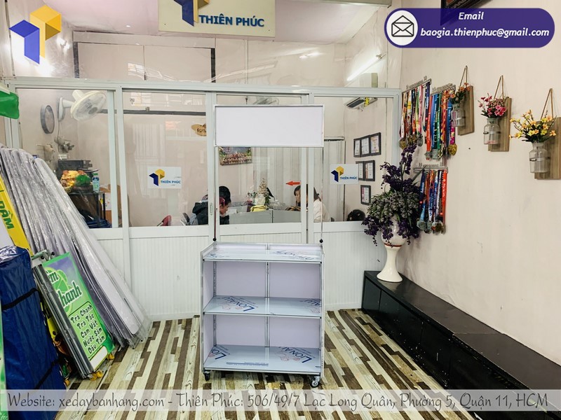 Với mẫu quầy bán hàng gấp gọn lưu động này rất dễ lắp ráp và tháo rời 1 cách đơn giản và tiện lợi.