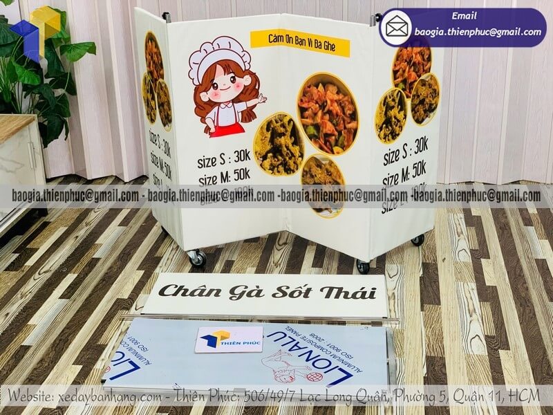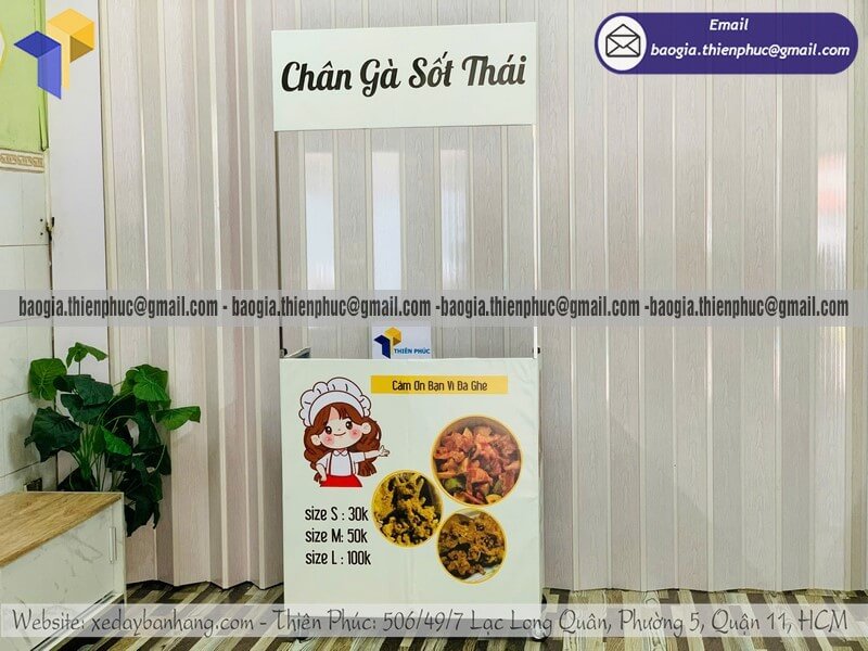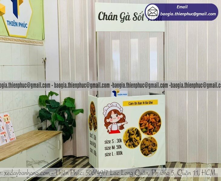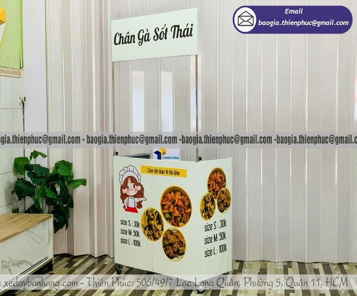 Thứ ba, trông chuyên nghiệp hơn hẳn bàn tạm hay mâm nhựa. Cùng một mặt hàng, cùng một vị trí bán – nhưng bày trên xe gọn gàng, màu sắc đồng bộ sẽ thu hút khách dừng lại nhiều hơn. Nhiều người bán chia sẻ rằng doanh thu tăng rõ rệt chỉ sau khi chuyển từ bàn tạm sang xe chuyên dụng.
