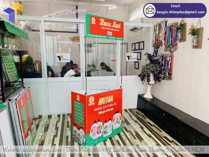 Để được sở hữu những sản phẩm chất lượng, booth sampling giá rẻ, booth sampling nhựa giá rẻ, quầy booth giá rẻ, hãy liên hệ ngay với Thiên Phúc: